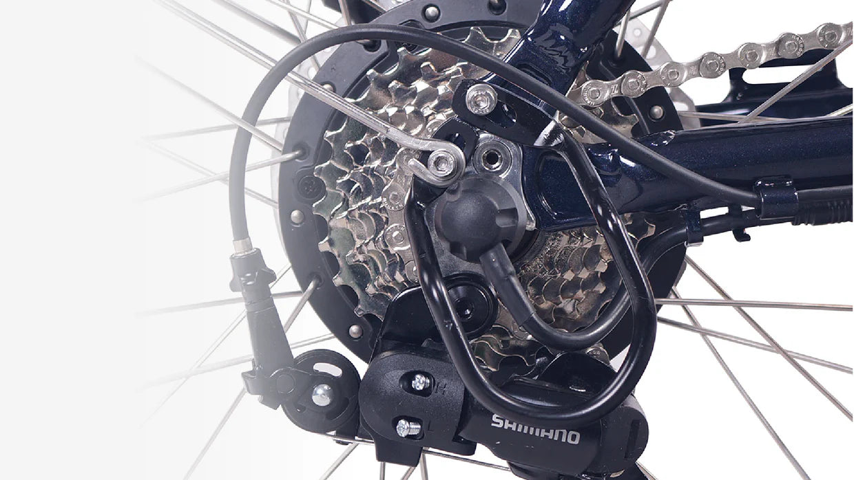 A Shimano Tourney derailleur ensures smooth, precise, and reliable gear shifting, giving you confidence on any terrain.