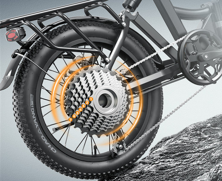 Easily switch gears with a responsive 7-speed drivetrain. Adapt to different terrains and riding conditions effortlessly. Smooth shifting ensures a better riding experience.