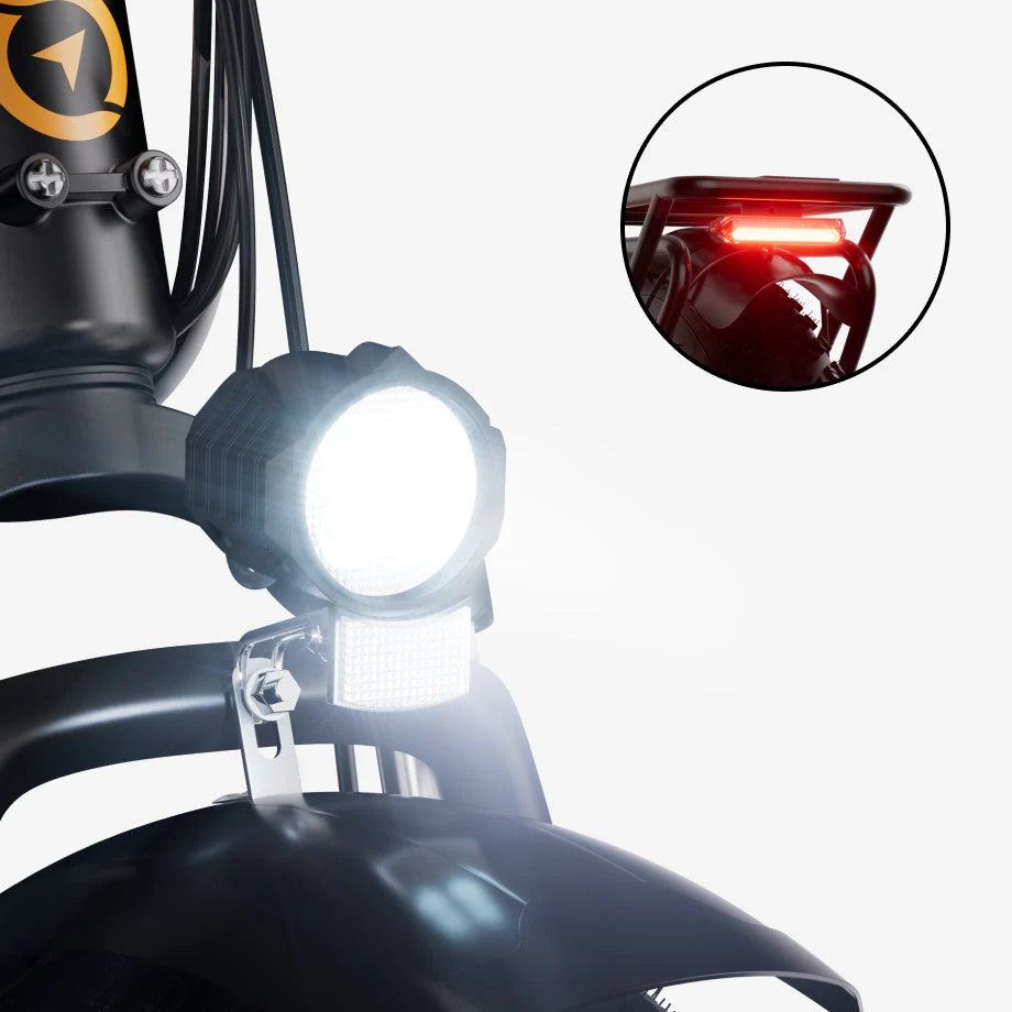 The LED headlight illuminates your path, while the integrated tail light flashes when braking, serving as a nighttime signal.