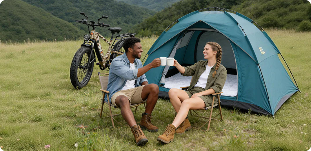 Fat tire eBikes are perfect for camping trips and outdoor escapes. Wide tires and stable suspension handle dirt roads, gravel paths, and campground terrain with ease—making it simple to carry gear, explore nearby trails, or cruise around the campsite in total comfort.