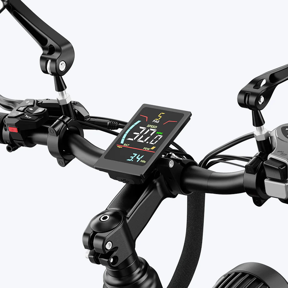 Displays critical ride data like speed, battery life, and mileage, with excellent visibility in all light conditions