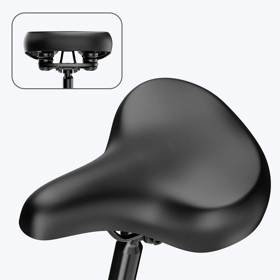 Thunder Pro features an ergonomically designed, thickened saddle with high-resilience padding that provides lasting comfort and absorbs bumps from rough terrain.